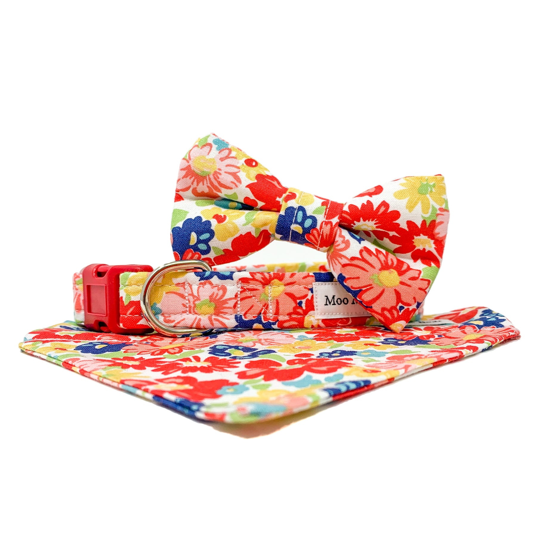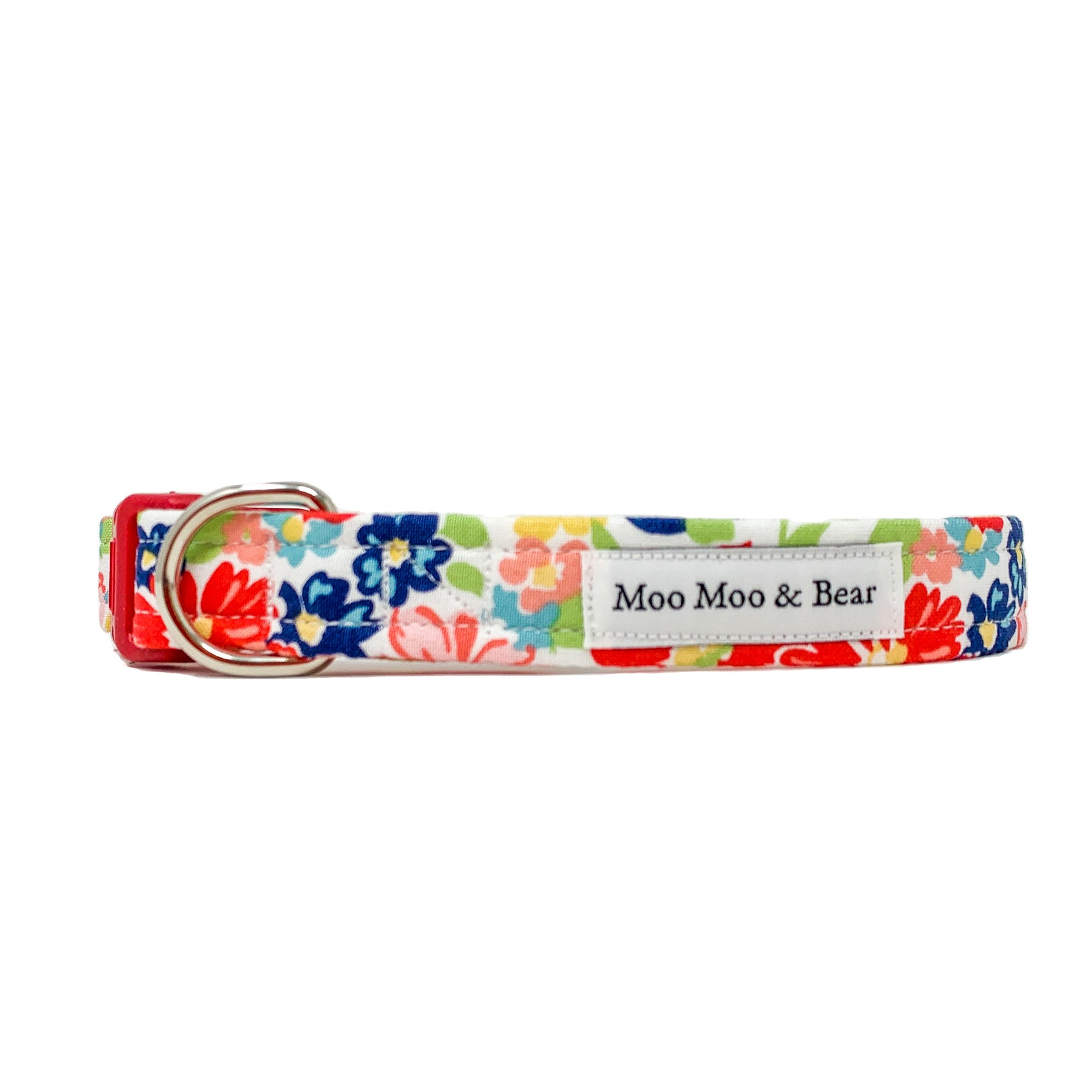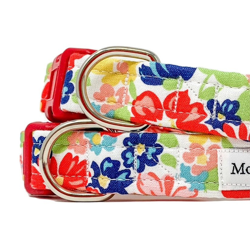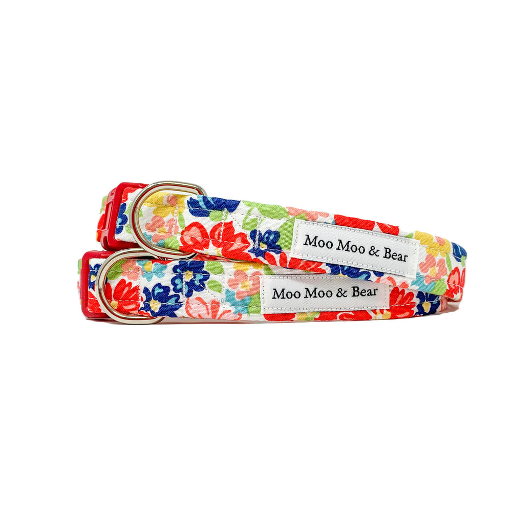 A vintage inspired floral fabric reminiscent of the days of the tea dance. Whether you will be waltzing on your walk or tango-ing for your tea, this handmade dog collar will give you the vintage vibes for summer. For a fully co-ordinated look, we also have matching accessories.