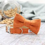 The Wensleydale bow tie, is handmade in a plain orange twill Yorkshire tweed, and makes the perfect accessory for your dog.