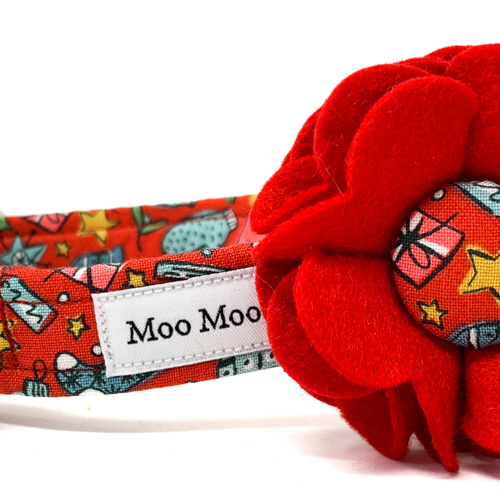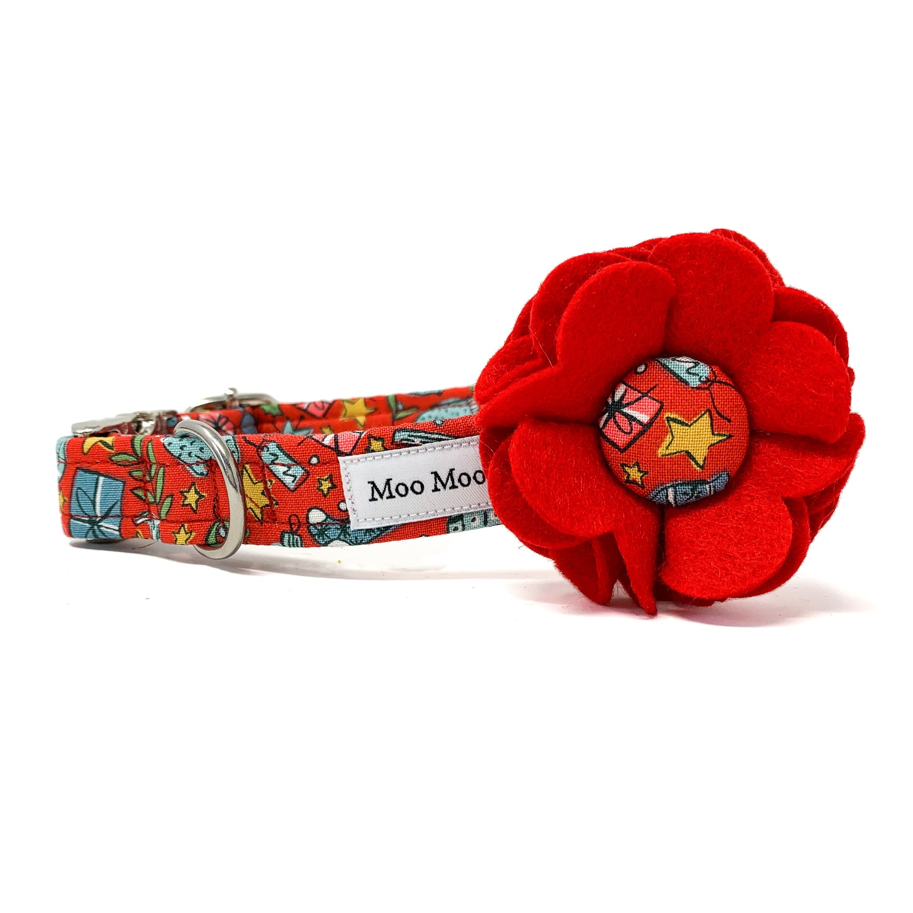 CHRISTMAS AT LIBERTY FESTIVE JOY RED FELT DOG COLLAR FLOWER