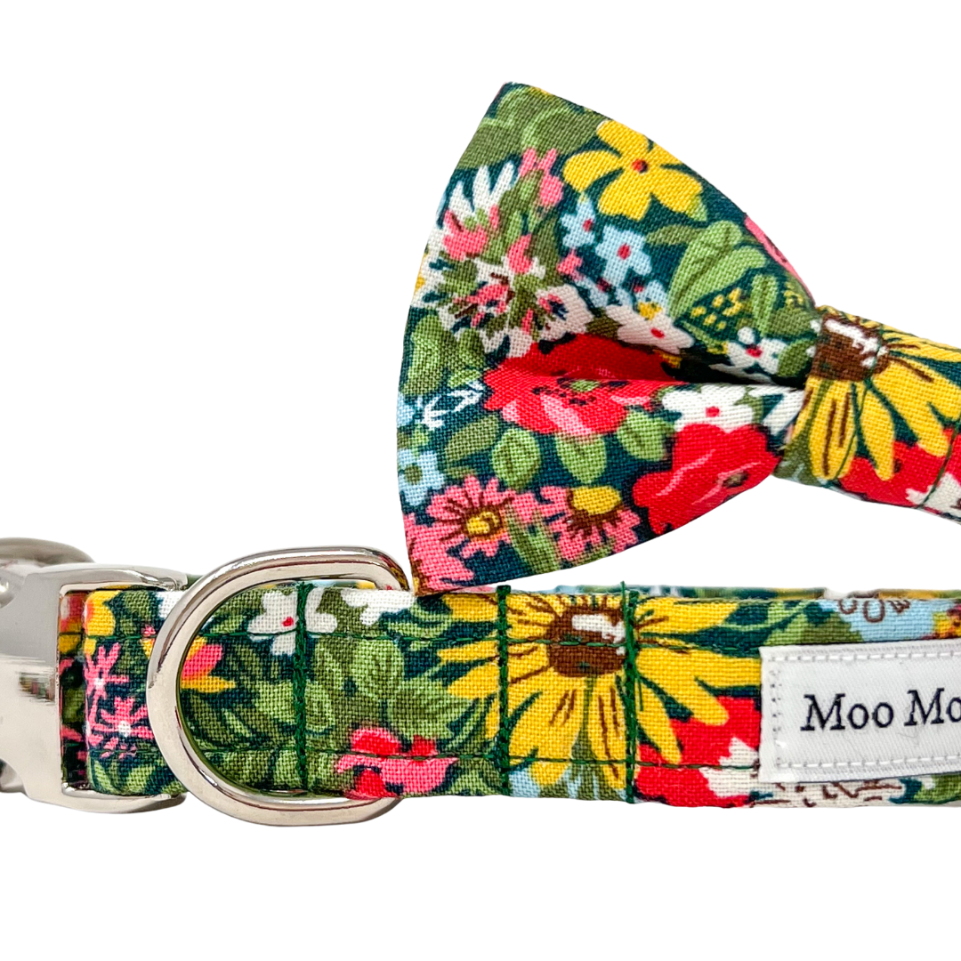 Malvern Meadow is a floral dog bow for your dogs collar from the luxurious Liberty brand featuring a beautiful array of spring flowers including daisies, dandelions, bell flowers and poppies. For a more co-ordinated look, why not add the matching collar.