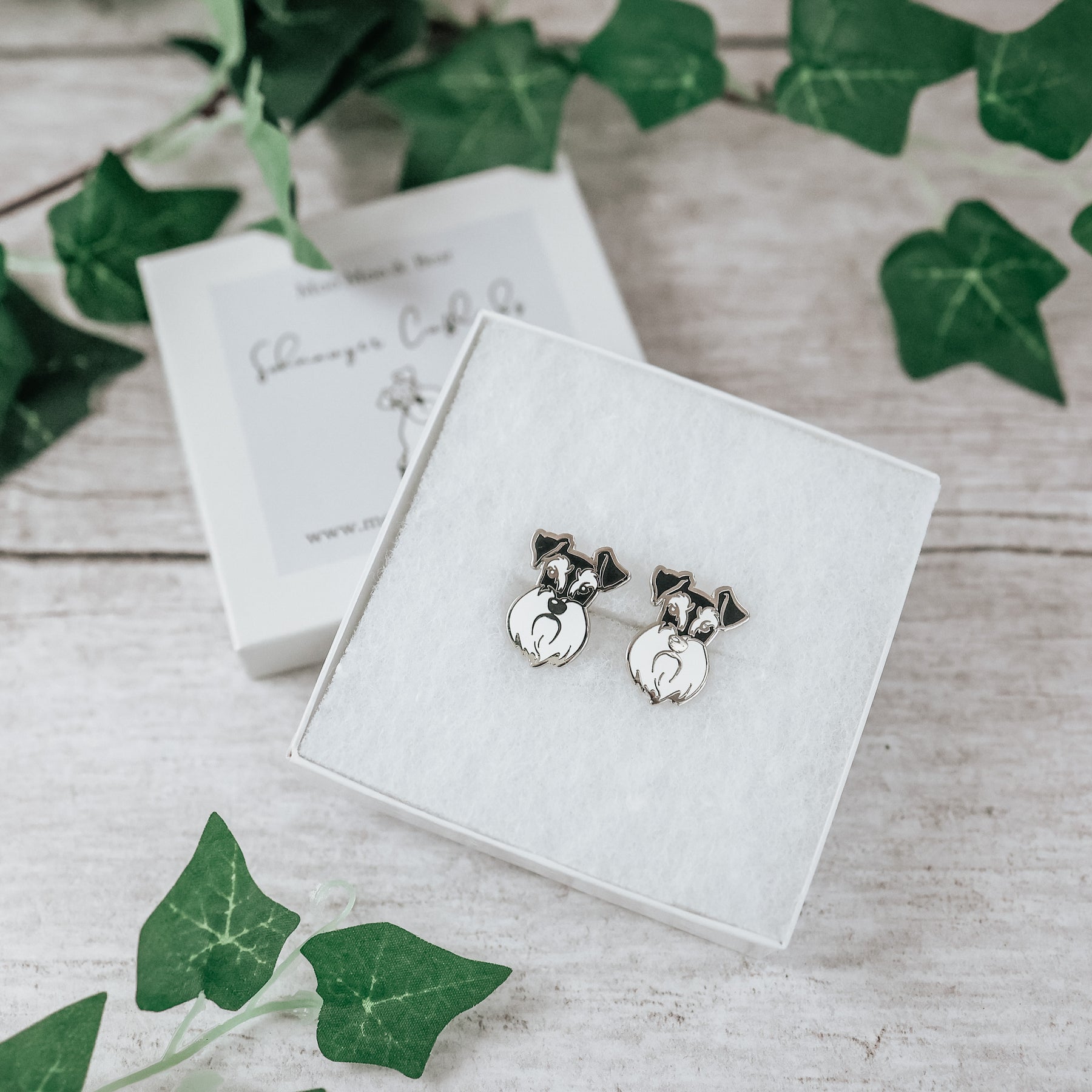 Featuring our very own schnauzer head design in a hardwearing enamel in a choice of silver or gold coloured plating. These beautiful schnauzer cufflinks would make a beautiful gift for the dog dad on any occasion.