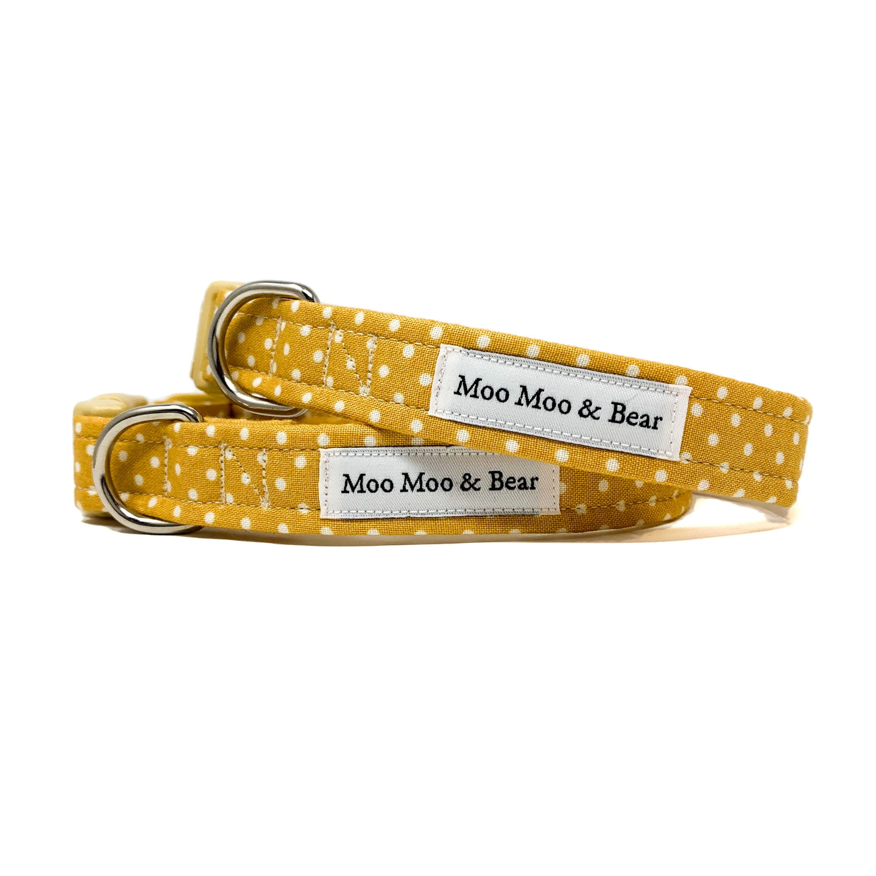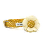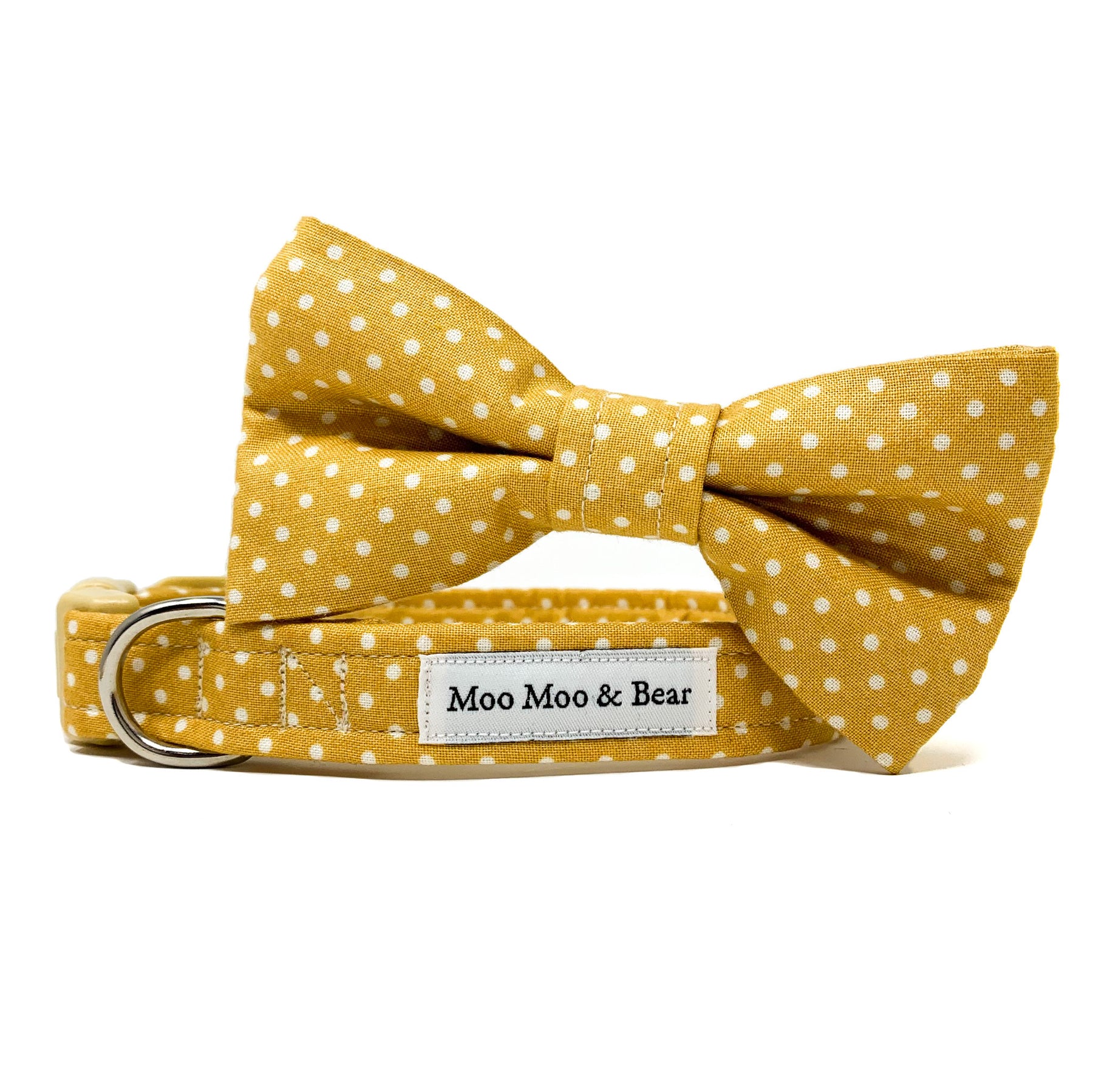 A timeless classic polka dot dog bow tie in mustard yellow, simply perfect for any occasion.